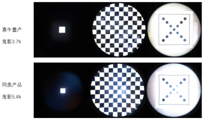 多年來,由于偏振及多界面的引入帶來的鬼影(雜散光)問題是VR-PK光學方案的性能瓶頸。過去3年多,惠牛持續研發VR-PK方案降鬼影技術,率先于同行將量產品的鬼影度降至3%左右(最優樣品可達2%),達到跟傳統菲涅爾光學(如:Quest2)相當的畫面純凈度,并布局了20篇降鬼影相關專利。